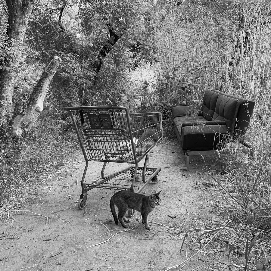 These changes also include the transient human presence along the trail. The creek’s watershed has been shaped by dams and engineering, and for many years, it was home to the largest homeless encampment in America. Though the Jungle has been cleared, makeshift shelters continue to appear and disappear with little notice. For some, the trail is a place to pass through; for others, it is a home in the most literal sense. The fleeting nature of these camps, and the lives that inhabit them, mirrors the ephemerality of the landscape itself.