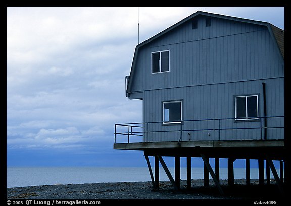 Watefront house on stilts on the Spit. Homer, Alaska, USA