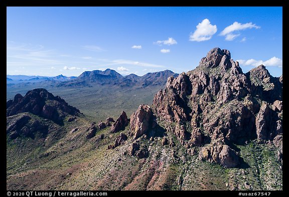 Aerial view of Wolcott Peak, and Ragged Top with distant Silver Bell Mountains. Ironwood Forest National Monument, Arizona, USA