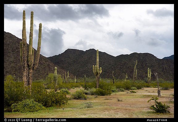 Tall Saguaro cactus, Margies Cove. Sonoran Desert National Monument, Arizona, USA
