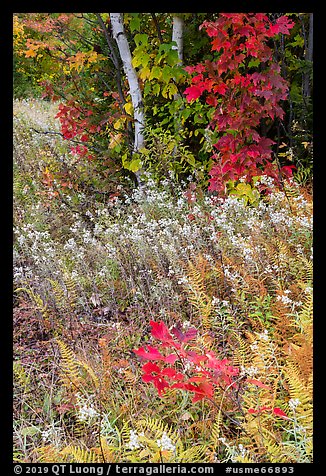 Wildflowers, ferns, and maple in meadow. Katahdin Woods and Waters National Monument, Maine, USA