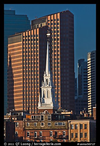 Old North Church and high-rise buildings. Boston, Massachussets, USA