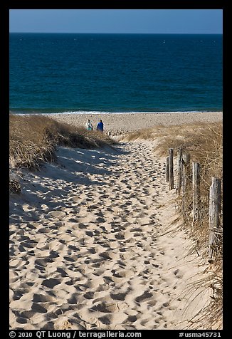 Path to ocean through dunes and tourists, Cape Cod National Seashore. Cape Cod, Massachussets, USA