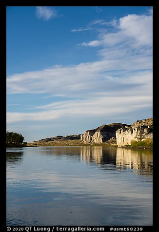 River bordered by sandstone cliffs. Upper Missouri River Breaks National Monument, Montana, USA