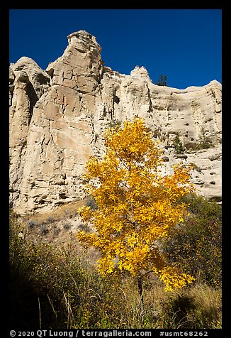 Tree in fall foliage in Neat Coulee canyon. Upper Missouri River Breaks National Monument, Montana, USA