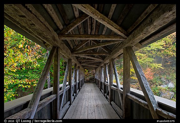 Covered bridge seen from inside, Franconia Notch State Park. New Hampshire, USA