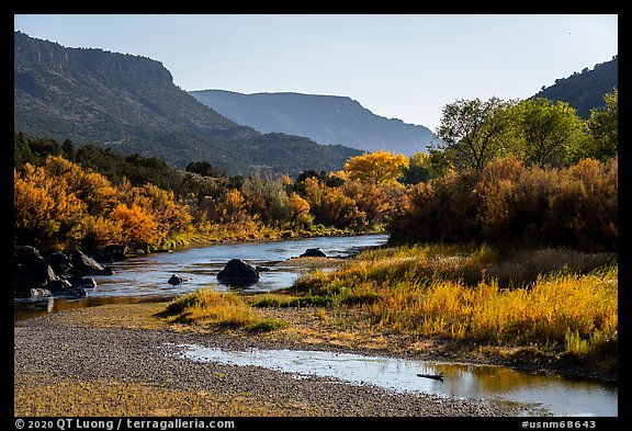 Trees in fall foliage in Lower Gorge. Rio Grande Del Norte National Monument, New Mexico, USA