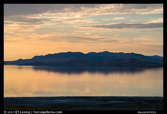 Hills reflected at sunset, Antelope Island, Great Salt Lake,. Utah, USA