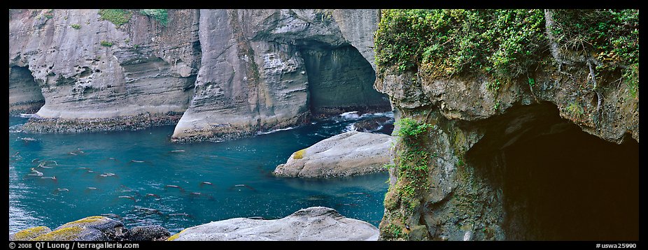 Seascape with seacaves, Olympic Peninsula. Olympic Peninsula, Washington (Panoramic)