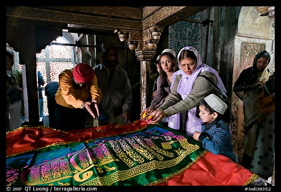 Women making offerings on Shaikh Salim Chishti tomb. Fatehpur Sikri, Uttar Pradesh, India