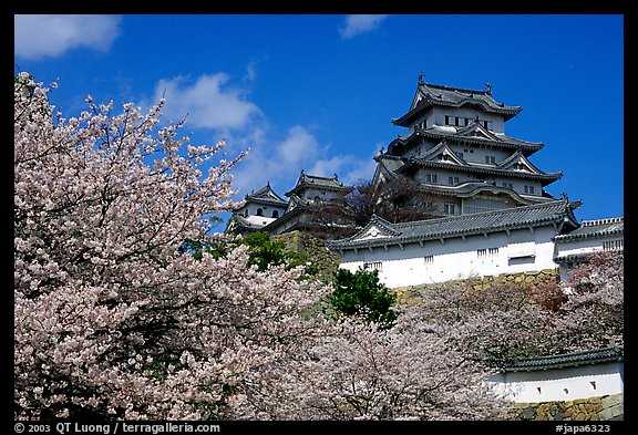 Blooming cherry tree and castle. Himeji, Japan
