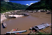 The Mekong river between Luang Prabang and Huay Xay has a character very different from the one better known in its Vietnamese delta. Here it is still narrow with rapids, and traverses luxuriant mountainous landscapes. On the way, you see small villages and hamlets which can be reached only by the river, where tourists are seen so little that they are still and object of curiosity. On the slow boat, which takes two to three days, you share the ride at the rhythm of the river with colorful local people. The fast boat is not for those easily scared. It skirts the rapids at more than 50mph, making the trip in less than half a day.