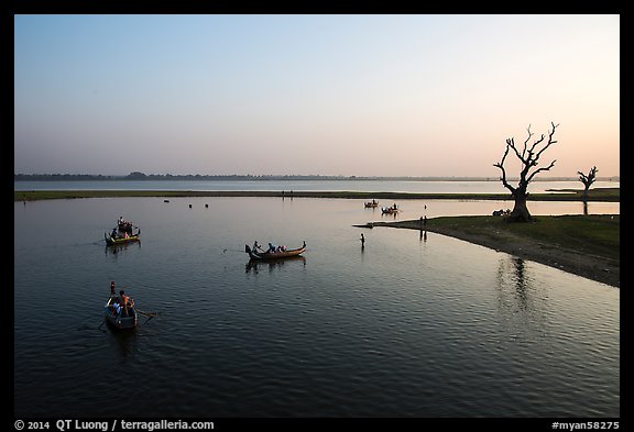 Tree skeletons and boats, Taungthaman Lake. Amarapura, Myanmar