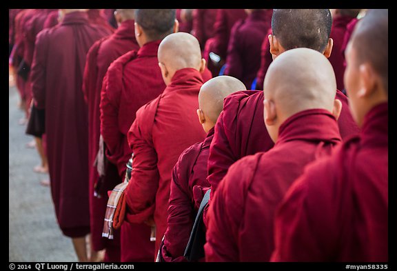 Shaven heads of monks, Mahagandayon Monastery. Amarapura, Myanmar