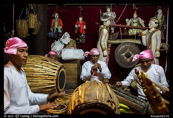 Traditional Musicians during puppet show. Bagan, Myanmar