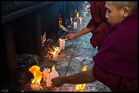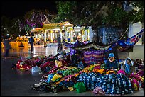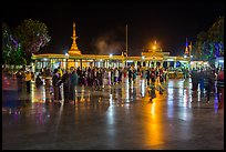 Busses and sign at base station. Kyaiktiyo, Myanmar ( color) Trucks carrying pilgrims to the top. Kyaiktiyo, Myanmar ( color) Monk walking barefoot on the path to the Golden Rock. Kyaiktiyo, Myanmar ( color) Vistor carried by porters on sedan chair,. Kyaiktiyo, Myanmar ( color) Kelasa Hilltop with golden rock in the distance. Kyaiktiyo, Myanmar ( color) Young men play chin lone (kick volleyball) at Yatetaung. Kyaiktiyo, Myanmar ( color) Pilgrims on platform below Golden Rock. Kyaiktiyo, Myanmar ( color) Morning food offering and pilgrims with cold weather hats. Kyaiktiyo, Myanmar ( color) Monks lighting candles. Kyaiktiyo, Myanmar ( color) Monks praying at the Golden Rock balancing boulder. Kyaiktiyo, Myanmar ( color) Monks standing in prayer near the Golden rock at sunrise. Kyaiktiyo, Myanmar ( color) Pilgrim prays to the gleaming Golden Rock at sunset. Kyaiktiyo, Myanmar ( color) Golden Rock balancing boulder stupa and monks at dawn. Kyaiktiyo, Myanmar ( color) Sunset colors the sky above the Golden Rock. Kyaiktiyo, Myanmar ( color) Platforms around the Golden Rock at sunset. Kyaiktiyo, Myanmar ( color) Bridge to the Golden rock with last light on horizon. Kyaiktiyo, Myanmar ( color) Pilgrims pray with candles behind the Golden Rock. Kyaiktiyo, Myanmar ( color) Offerings to the Buddha continues throughout the night at the Golden Rock. Kyaiktiyo, Myanmar ( color) Crowds on main plaza at night. Kyaiktiyo, Myanmar ( color) Pilgrims camp on the plaza. Kyaiktiyo, Myanmar ( color) Entrance to Potemkin village of restaurants and souvenir shops. Kyaiktiyo, Myanmar ( color) Food vendors and souvenir shops at night, Potemkin village. Kyaiktiyo, Myanmar ( color) Girls carry offering material up the stairs of Potemkin village at night. Kyaiktiyo, Myanmar ( color) Colorfully lit guesthouses for Burmese people. Kyaiktiyo, Myanmar ( color)