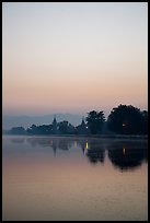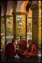 Moat and Mandalay Fort at dawn. Mandalay, Myanmar ( color) Pastel colors of dawn on Mandalay Fort moat. Mandalay, Myanmar ( color) Pagodas reflected in moat at dawn, Mandalay Fort. Mandalay, Myanmar ( color) Women exercising next to Mandalay Fort at dawn. Mandalay, Myanmar ( color) Sunrise, Mandalay Fort moat. Mandalay, Myanmar ( color) Sun rising over Shan Yoma mountains. Mandalay, Myanmar ( color) View from Mandalay Hill at sunset. Mandalay, Myanmar ( color) Stupa on Mandalay Hill overlooking misty plain. Mandalay, Myanmar ( color) Ridges in mist at sunrise seen from Mandalay Hill. Mandalay, Myanmar ( color) Pagodas and tree ridges in mist as seen from Mandalay Hill. Mandalay, Myanmar ( color) Kuthodaw Paya at sunrise. Mandalay, Myanmar ( color) View from Mandalay Hill, early morning. Mandalay, Myanmar ( color) Ogre King and view from  Mandalay Hill. Mandalay, Myanmar ( color) Stupas and spires at dawn, Sutaungpyei Pagoda. Mandalay, Myanmar ( color) Spires, Sutaungpyei Pagoda. Mandalay, Myanmar ( color) Stupas at Sandamani Paya. Mandalay, Myanmar ( color) Terrace of Sutaungpyei Pagoda at dawn. Mandalay, Myanmar ( color) Monks in Sutaungpyei Pagoda. Mandalay, Myanmar ( color) Monks during evening prayer. Mandalay, Myanmar ( color)