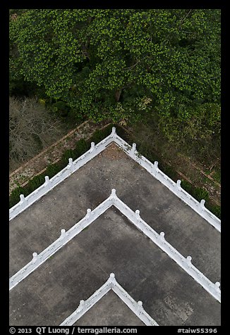 Corner of terraces seen from above, Tsen Pagoda. Sun Moon Lake, Taiwan