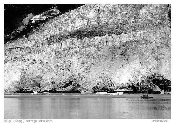 Boat at the base of Barry Glacier. Prince William Sound, Alaska, USA