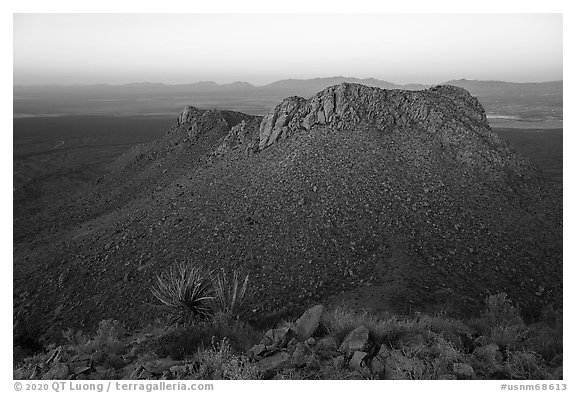 Sotol, Dona Ana mountains at sunset. Organ Mountains Desert Peaks National Monument, New Mexico, USA