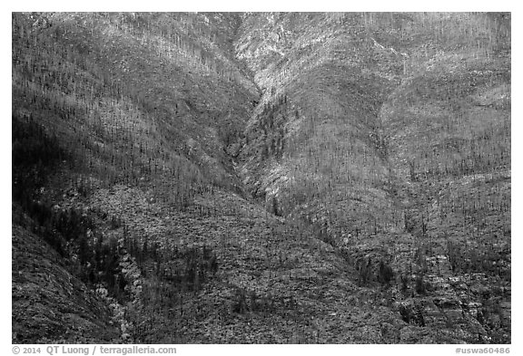 Slopes with burned trees and fall foliage, Lake Chelan. Washington
