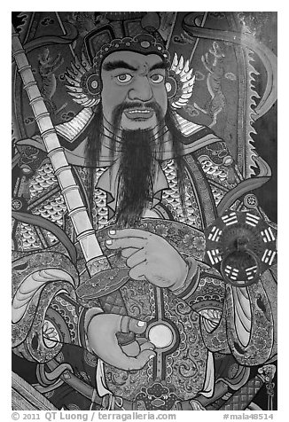 Guardian painting on door, Hock Tik Cheng Sin Temple. George Town, Penang, Malaysia