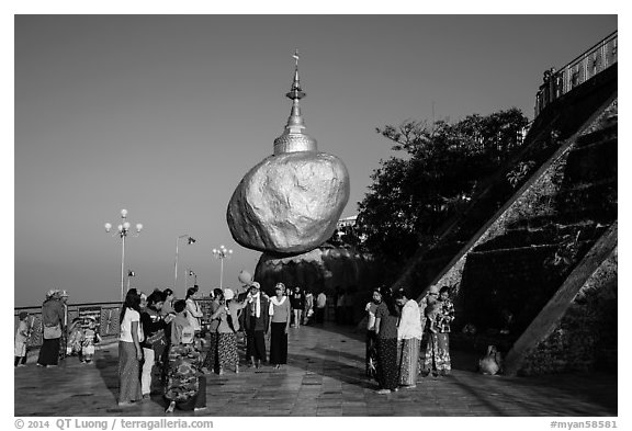 Pilgrims on platform below Golden Rock. Kyaiktiyo, Myanmar