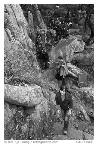 Hikers on trail, Mt Namsan. Gyeongju, South Korea