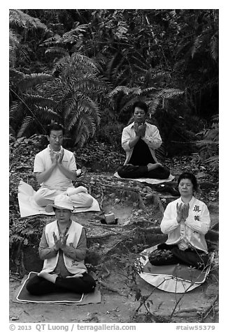 Members of religious sect in meditation. Sun Moon Lake, Taiwan