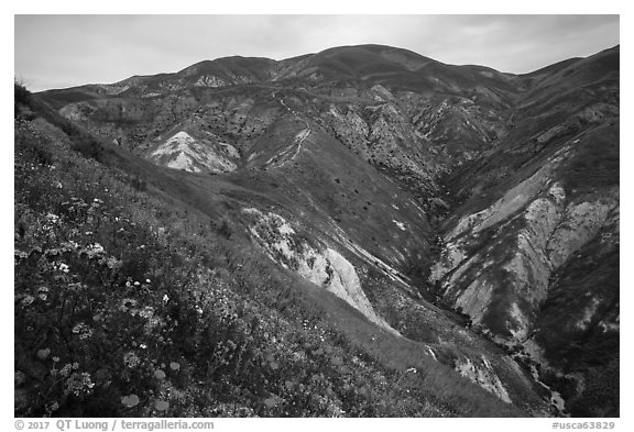 Phacelia, poppies, goldfields, Temblor Range hills. Carrizo Plain National Monument, California, USA