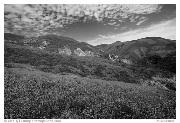 Temblor Range hills covered with wildflower mats. Carrizo Plain National Monument, California, USA