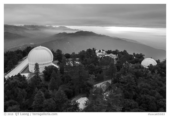 Aerial view of Mount Wilson observatory at sunrise. San Gabriel Mountains National Monument, California, USA