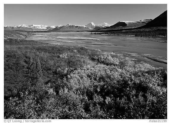 Susitna River and fall colors on the tundra. Alaska, USA