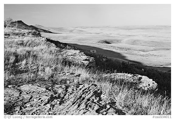 Prairie and foothills seen from the top of the cliff, Head-Smashed-In Buffalo Jump. Alberta, Canada