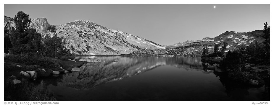 Alpine lake in cirque at dusk, Vogelsang. Yosemite National Park (Panoramic)