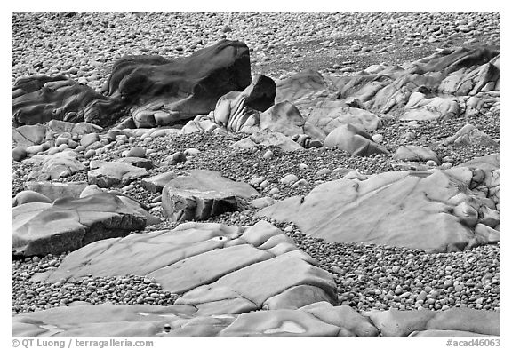 Slabs and pebbles on beach, Schoodic Peninsula. Acadia National Park, Maine, USA.
