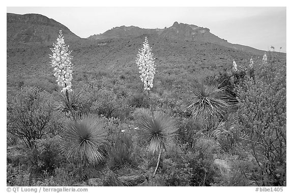 Yucas in bloom. Big Bend National Park, Texas, USA.