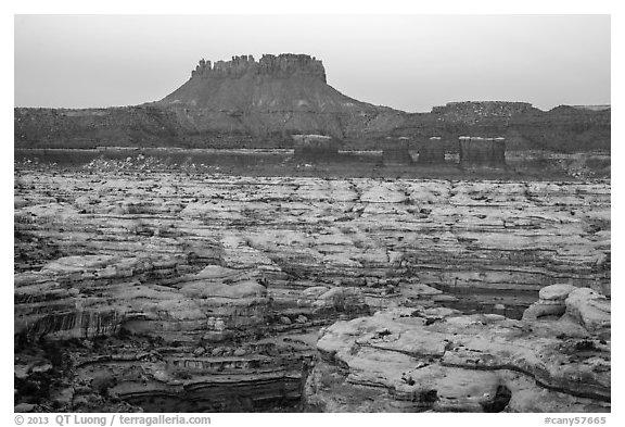 Chocolate drops, Maze canyons, and Elaterite Butte at dawn. Canyonlands National Park, Utah, USA.