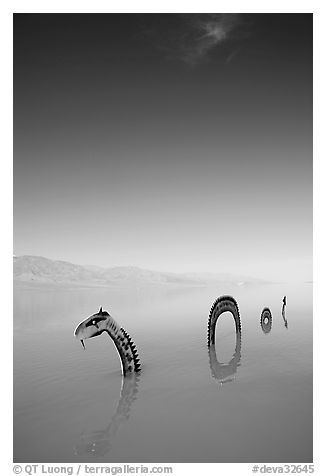 Short lived dragon art installation in rare seasonal lake. Death Valley National Park, California, USA.