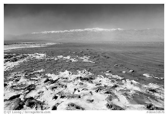 Salt formations and Manly Lake, morning. Death Valley National Park, California, USA.