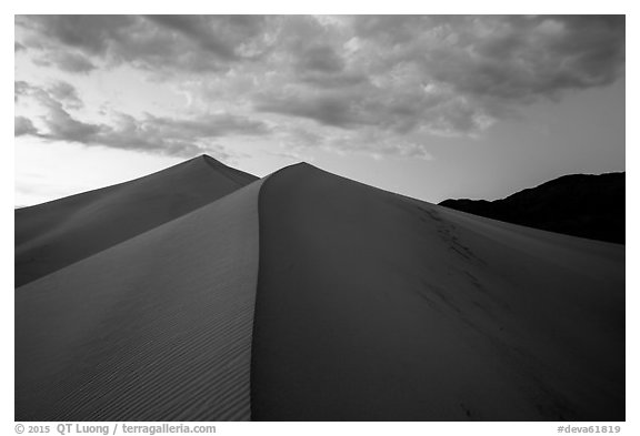 Dune ridges and mountains at sunset, Ibex Dunes. Death Valley National Park, California, USA.