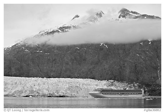 Cruise ship, Margerie Glacier, and Mt Forde. Glacier Bay National Park, Alaska, USA.
