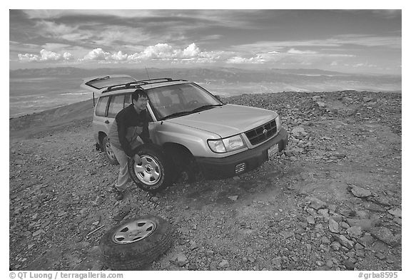 Flat tire on Mt Washington. Great Basin National Park, Nevada, USA.