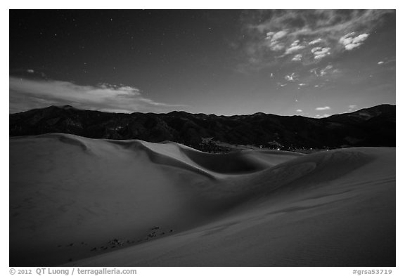 Dunes and mountains at night. Great Sand Dunes National Park and Preserve, Colorado, USA.