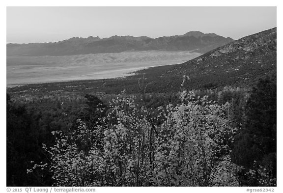 Autum Color and distant dunefield. Great Sand Dunes National Park and Preserve, Colorado, USA.