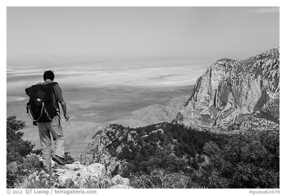Hiker walking on Guadalupe Peak. Guadalupe Mountains National Park, Texas, USA.