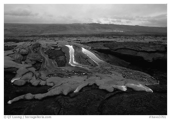 Molten lava flow at dawn on coastal plain. Hawaii Volcanoes National Park, Hawaii, USA.