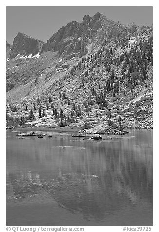 Mt Giraud and lake, Lower Dusy Basin. Kings Canyon National Park, California, USA.