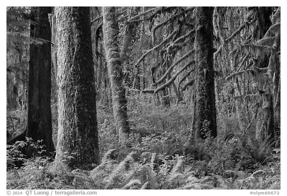 Ferns and moss-covered trees, Maple Glades. Olympic National Park, Washington, USA.