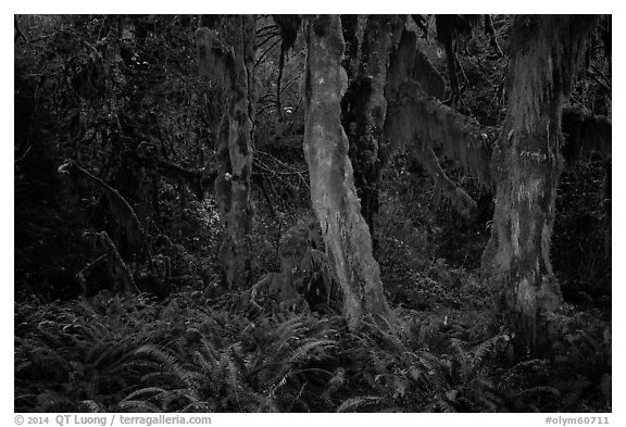 Maple grove at night, Hall of Mosses. Olympic National Park, Washington, USA.